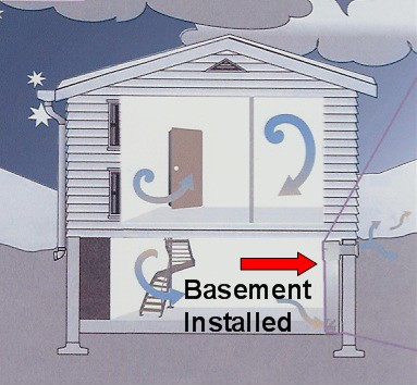 crawlspace to prevent dirt or debris from entering the fan. In basement